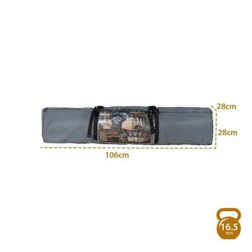 وتأتي داخل حقيبة مقاس 106 × 28 × 28 سم، وهي نفسها أبعاد الكرتون، مما يجعل نقلها وتخزينها عملي وسهل.