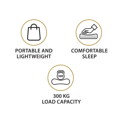 يتميز السرير بسطح ناعم ومريح مع سهولة النفخ والتفريغ، كما يمكن طيه وتخزينه بسهولة دون أن يشغل مساحة كبيرة، مما يجعله خيارًا عمليًا للاستخدام في مختلف الظروف.
