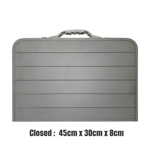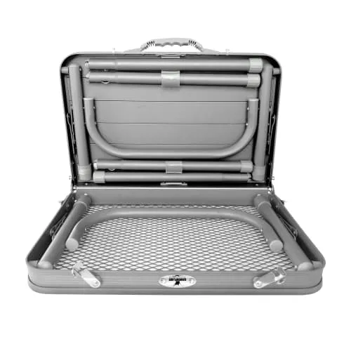 الطاولة مصنوعة من الألمنيوم الخفيف والمتين، ما يجعلها سهلة الحمل والتنقل مع الحفاظ على ثبات جيد أثناء الاستخدام. وزنها الخفيف 1.4 كجم فقط يجعلها مثالية للرحلات الطويلة والتنقل المستمر دون عناء.