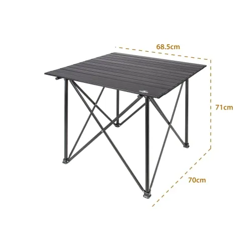بمقاس 70 × 70 سم وارتفاع 71 سم، توفر سطحًا عمليًا للاستخدام اليومي أثناء الرحلات، مع سماكة سطح 11 ملم لضمان ثبات أفضل. خيار مثالي لكل من يبحث عن طاولة رحلات متينة، عملية، وسهلة الحمل.