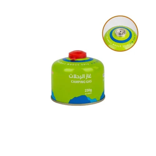 إذا تطلع بر أو تخييم وتحتاج غاز عملي وخفيف، غاز الرحلات 230 جم خيار مناسب للطلعات القصيرة. حجمه سهل الحمل ويعطيك أداء ثابت لتشغيل مواقد الرحلات وتحضير القهوة والطبخ الخفيف.