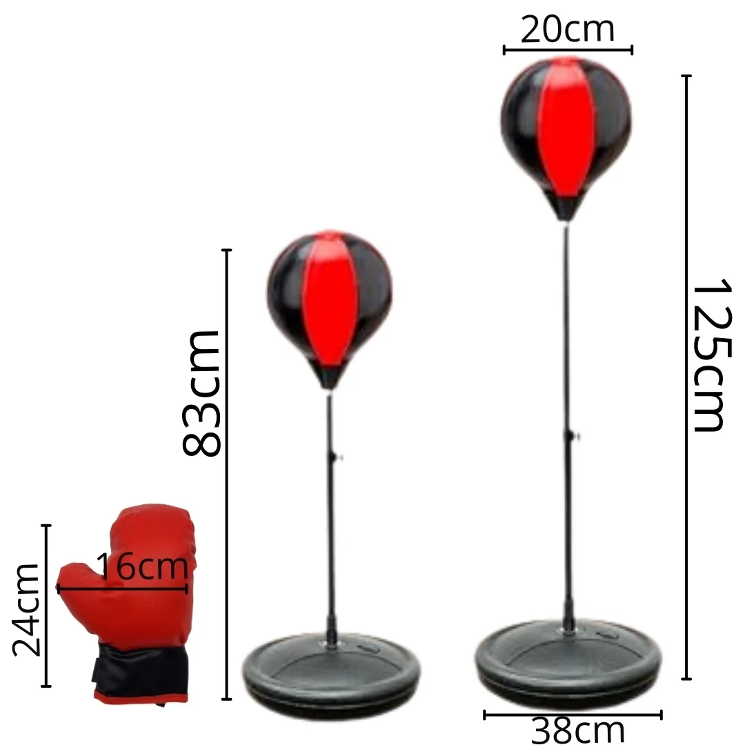 يأتي الحامل بارتفاع قابل للتعديل ليتناسب مع الأطفال في مراحل عمرية مختلفة، ويمكن ملء القاعدة بالماء أو الرمل للحصول على ثبات ممتاز أثناء اللكم، مع حركة ارتدادية سلسة تعزز المتعة وتحفّز الطفل على الاستمرار.