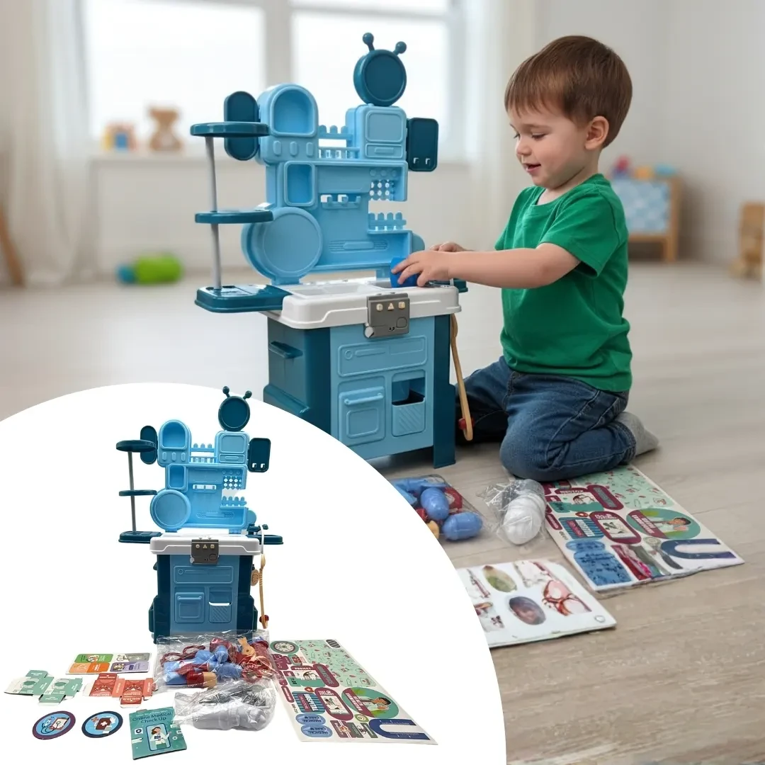 تتيح للأطفال محاكاة الفحوصات الطبية مثل قياس العين ودرجة الحرارة، مما يعزز الخيال والتفكير الإبداعي في بيئة اللعب.