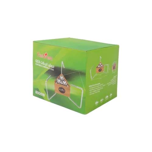 يتصك ويتفك بسهولة، ويجي مع حقيبة وقدّاحة علشان تكون جاهز بأي وقت. حجمه صغير ووزنه خفيف، يعني تحطه بالشنطة بدون ما تحس فيه، ويخدمك بالقهوة، الطبخ السريع، وتسخين الأكل بكل راحة.